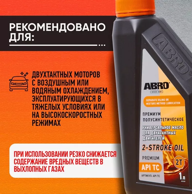 Рекомендовано для двухтактных моторов с воздушным или водяным охлаждением, эксплуатирующихся в тяжелых условиях или на высокоскоростных режимах. Предназначено для скутеров, мотоциклов, снегоходов, а также для всех типов лодочных моторов и гидроциклов с совмещенной или раздельной системой смазки. Специальный комплекс присадок гарантирует чистоту деталей мотора и превосходную защиту от износа и коррозии. При использовании резко снижается содержание вредных веществ в выхлопных газах. Пластиковая канистра. Объем 1 л