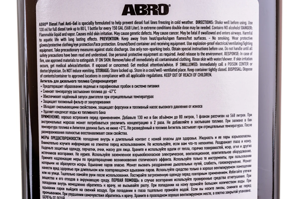 Тщательно взболтайте перед применением. Расход: бутылка на 568 литров. При экстремальных условиях на указанное количество топлива могут понадобиться 2 бутылки. Не содержит спиртов.