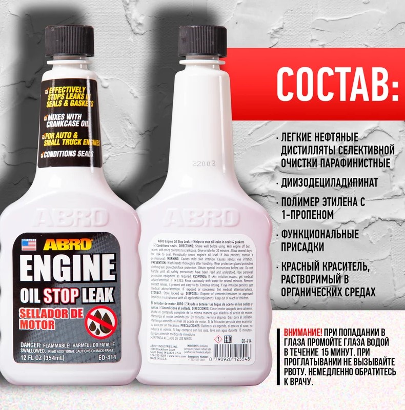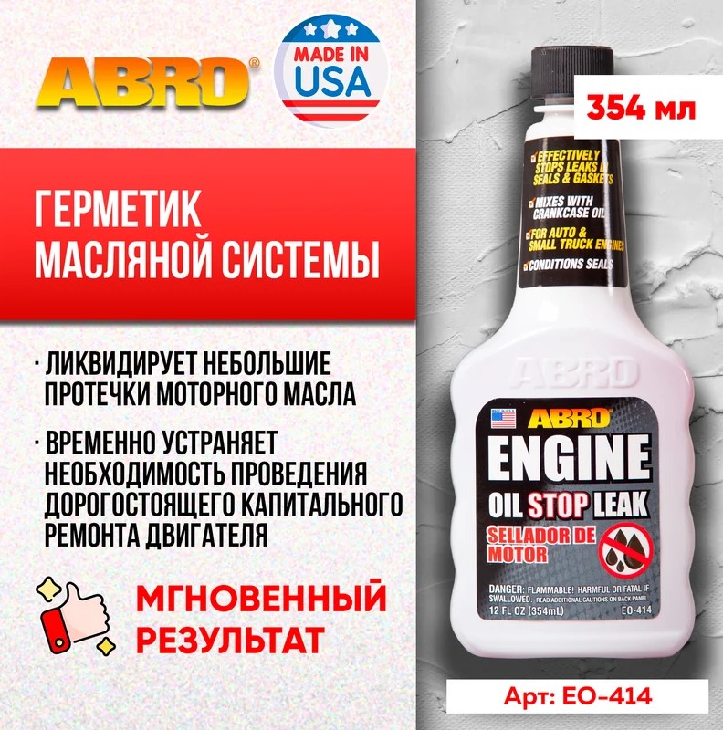 • Ликвидирует небольшие протечки моторного масла, временно устраняет необходимость проведения дорогостоящего капитального ремонта двигателя, требующего больших временных затрат.