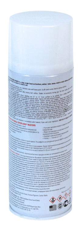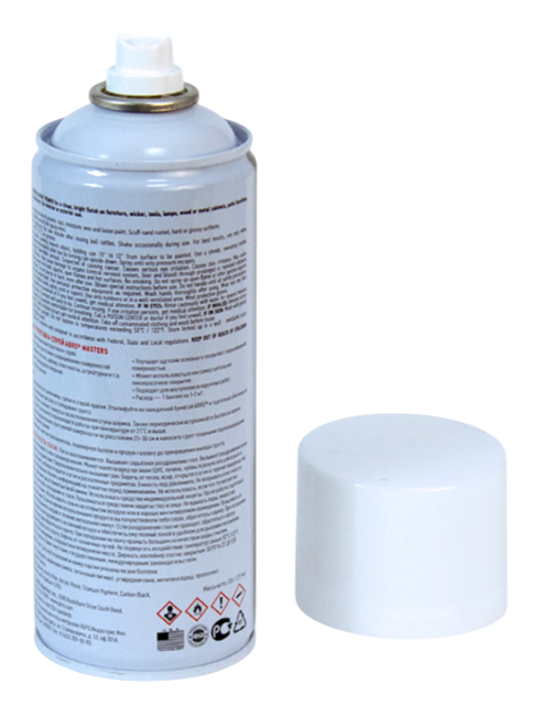 Ацетон, этилацетат, акриловая смола, титановый пигмент, углеродная сажа, метиленхлорид, пропеллент (пропан-бутановая смесь).