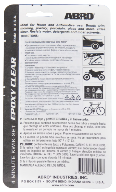 Содержит эпоксидную смолу и полимеркаптановый затвердитель. Раздражает кожу и глаза. Используйте в проветриваемом помещении. При попадании в глаза промойте водой в течение 15 минут. При попадании на кожу удалите клей салфеткой и вымойте водой с мылом. Не принимайте внутрь. При проглатывании не вызывайте рвоту. БЕРЕЧЬ ОТ ДЕТЕЙ!