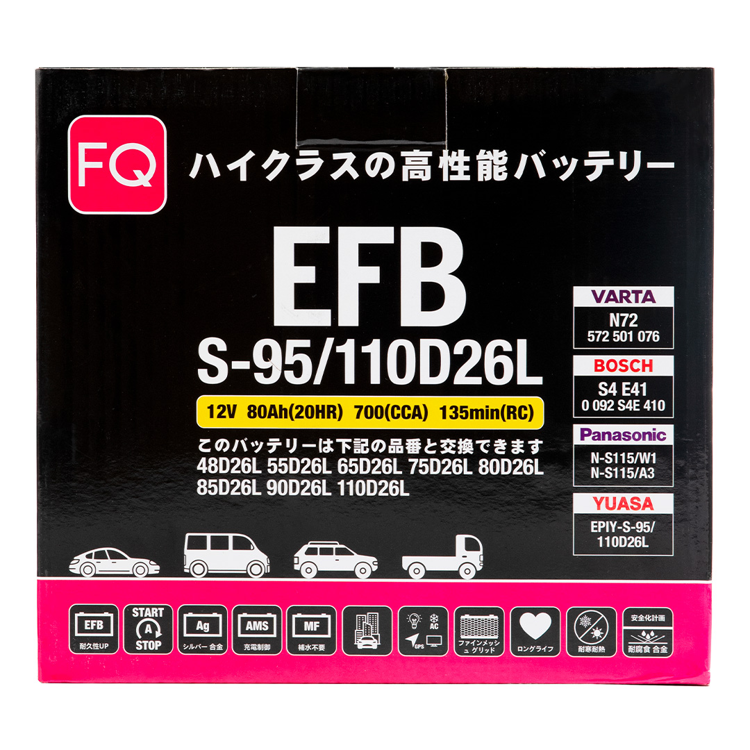 Аккумуляторные батареи серии JIS EFB (Enhanced Flooded Battery) предназначены для эксплуатации с системами START-STOP. Данная серия характеризуется высокой мощностью пускового тока, устойчивостью к глубоким разрядам, скоростью приема заряда и длительным сроком эксплуатации.