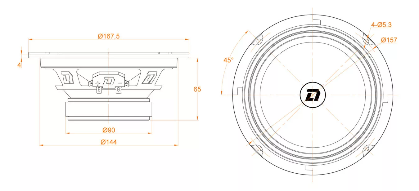 Размер внешней самой большой окружности динамика. Определяет какого диаметра вам понадобится отверстие для установки данного диаметра.