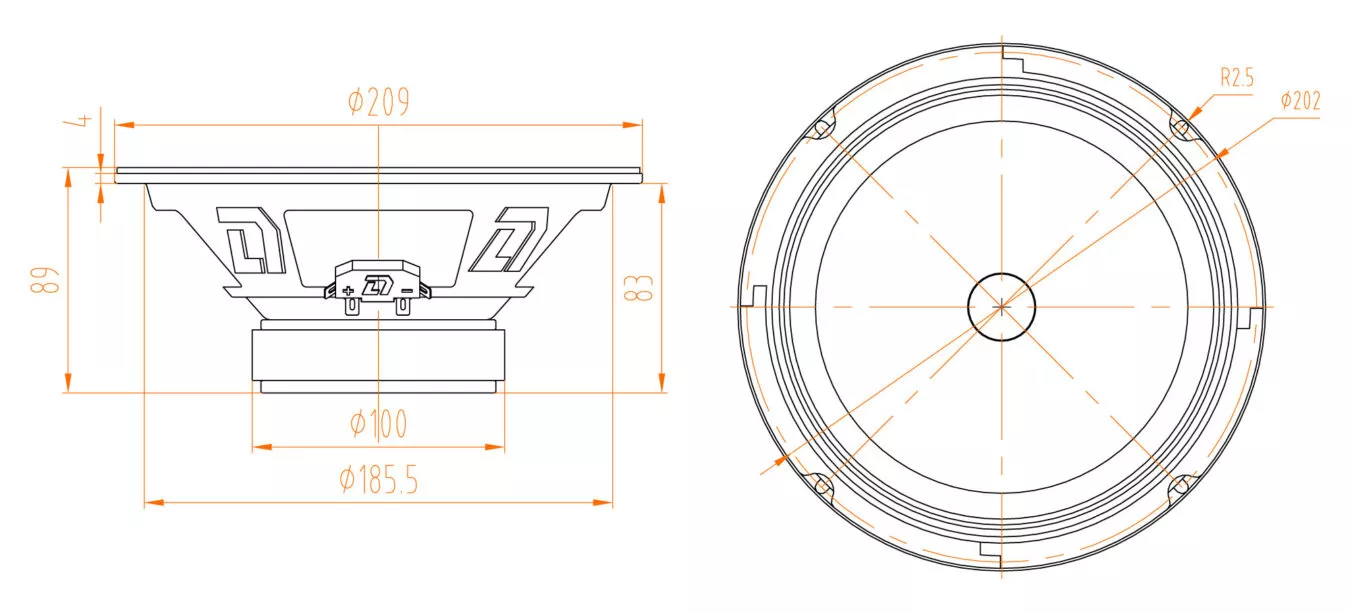 Размер внешней самой большой окружности динамика. Определяет какого диаметра вам понадобится отверстие для установки данного диаметра.