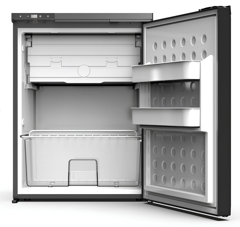 Alpicool CR65 – встраиваемый компрессорный автохолодильник на 65 л. Он хорошо подходит для установки в кабинах большегрузных авто, туристических и междугородних автобусов, на водном транспорте, в кемпинговых фургонах и фут-треках. Мощный компрессор обеспечивает охлаждение и заморозку любых продуктов: от овощей и соков до мяса и рыбы. Доступ во внутрь выполнен сбоку по принципу домашнего холодильника. Дверца закрывается на защелку. Холодильник выполнен в стильном дизайне. Корпус металлический, внутренняя камера оснащена подсветкой и выполнена из пластика. Внутри есть ящики для овощей и съемные полки на дверце. Камеру можно разделить на два отсека специальной перегородкой – так в ней появится обособленная морозильная камера. Холодильник работает от бортовой сети автомобилья 12-24 в, 220в и т.д.