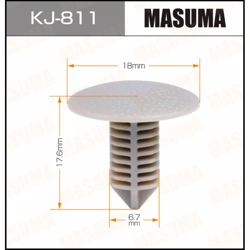 Masuma — один из крупнейших в мире производителей клипс для автомобилей. Автомобильная клипса (пистон, зажим) — это пластмассовая деталь, предназначенная для крепежа облицовочной и изоляционной части автомобиля. В ассортименте бренда есть клипсы для крепления практически любого элемента отделки машины. Клипсы отличаются повышенной прочностью и износостойкостью.