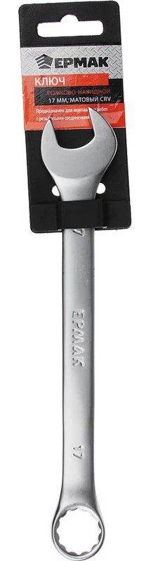 Рожково-накидной ключ ЕРМАК 17мм, матовый CRV 736-058 необходим для работы с крепежом. Благодаря точному расположению губок инструмент легко захватывает крепеж нужного размера. Работа ведется без риска срыва граней.