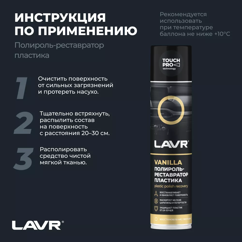 Средство для реставрации и защиты пластиковых, резиновых и виниловых поверхностей автомобиля. Восстанавливает цвет и эластичность материалов, маскируя мелкие дефекты, потертости и царапины. Предохраняет от впитывания воды, масла и агрессивных компонентов.