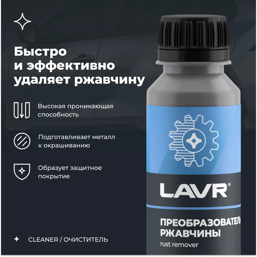 Состав удаляет ржавчину на кузове и деталях автомобиля, готовит металл к грунтовке и окрашиванию. Защитное покрытие с ионами цинка препятствует повторному появлению коррозии. Может применяться для демонтажа приржавевших соединений. Действует быстро, расходуется экономично.
