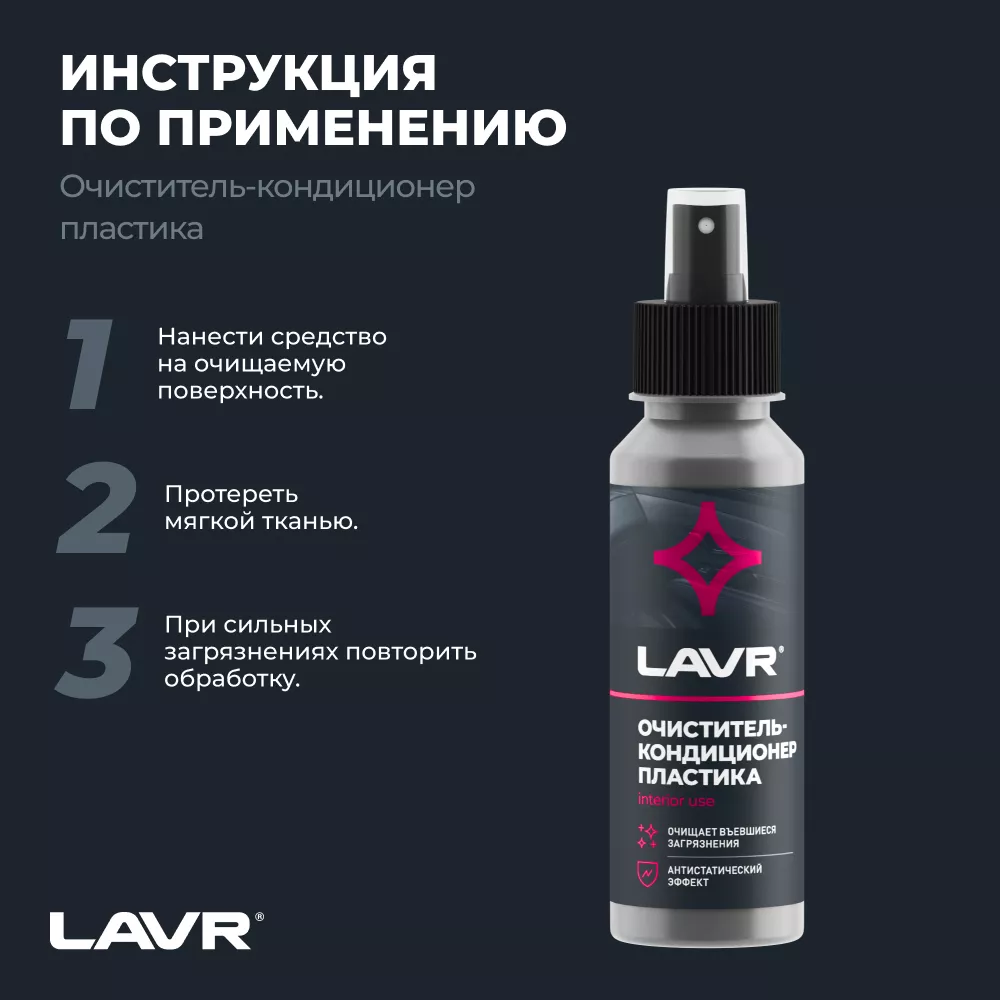 Средство для очищения загрязнений с пластиковых поверхностей автомобиля. Обладает антистатическим эффектом, уничтожает въевшийся запах табака. Подходит для внутренних и внешних пластиковых элементов.