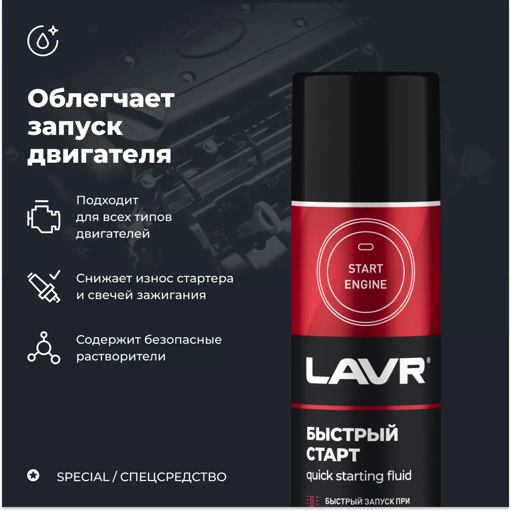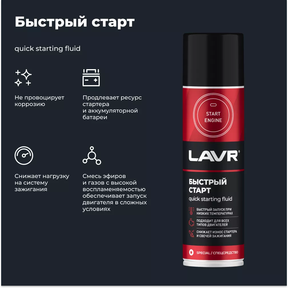 Специализированный аэрозоль для распыления в систему впуска бензиновых и дизельных двигателей. Облегчает запуск в условиях низких температур, повышенной влажности и заправке некачественным топливом.