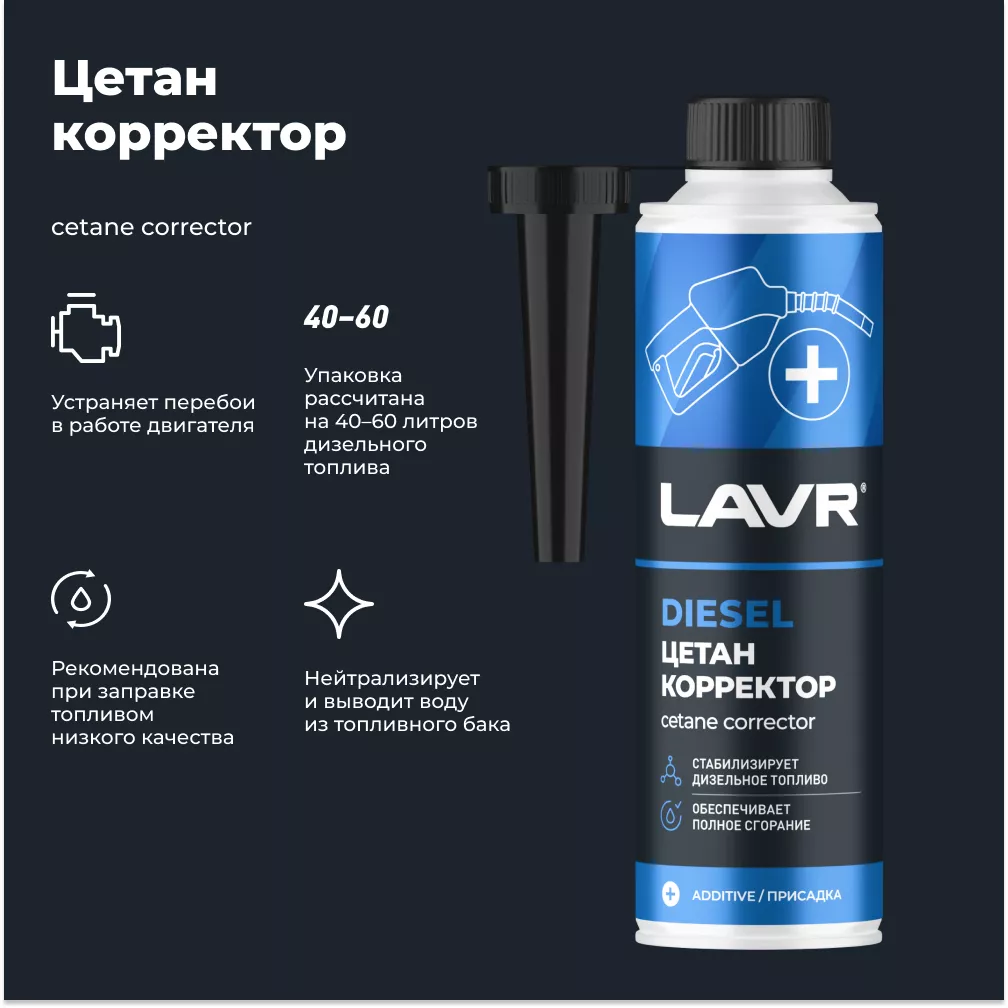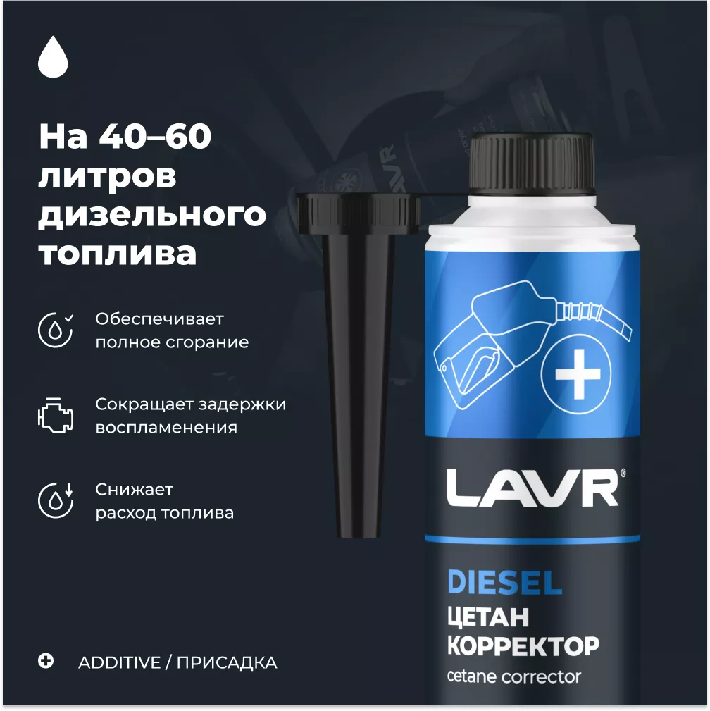 Специальная присадка в дизельное топливо для повышения цетанового числа. Позволяет предотвратить негативные последствия от использования низкокачественногодизельного топлива.