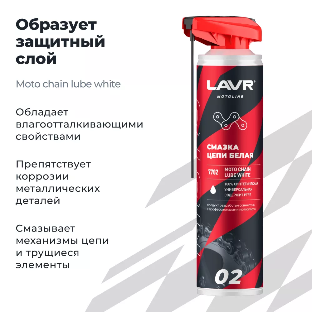 Белая синтетическая смазка универсального назначения. Антифрикционный компонент PTFE гарантированно снижает трение во всех подвижных деталях, увеличивая их ресурс. Долговременно защищает цепь даже в экстремальных условиях, препятствуя налипанию грязи и пыли. Подходит для эндуро, стрит, дорожных и высокоскоростных мотоциклов. Совместима с бессальниковыми цепями и с сальниковыми уплотнениями. Рекомендуется для дальних путешествий и межсезонной консервации.