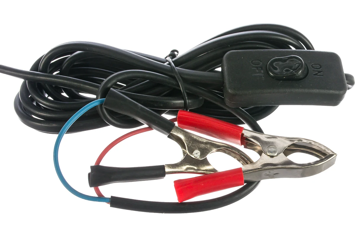 3. Подключите питание. Стандартное питание от АКБ с помощью шнура питания с контактами (“крокодилами”).