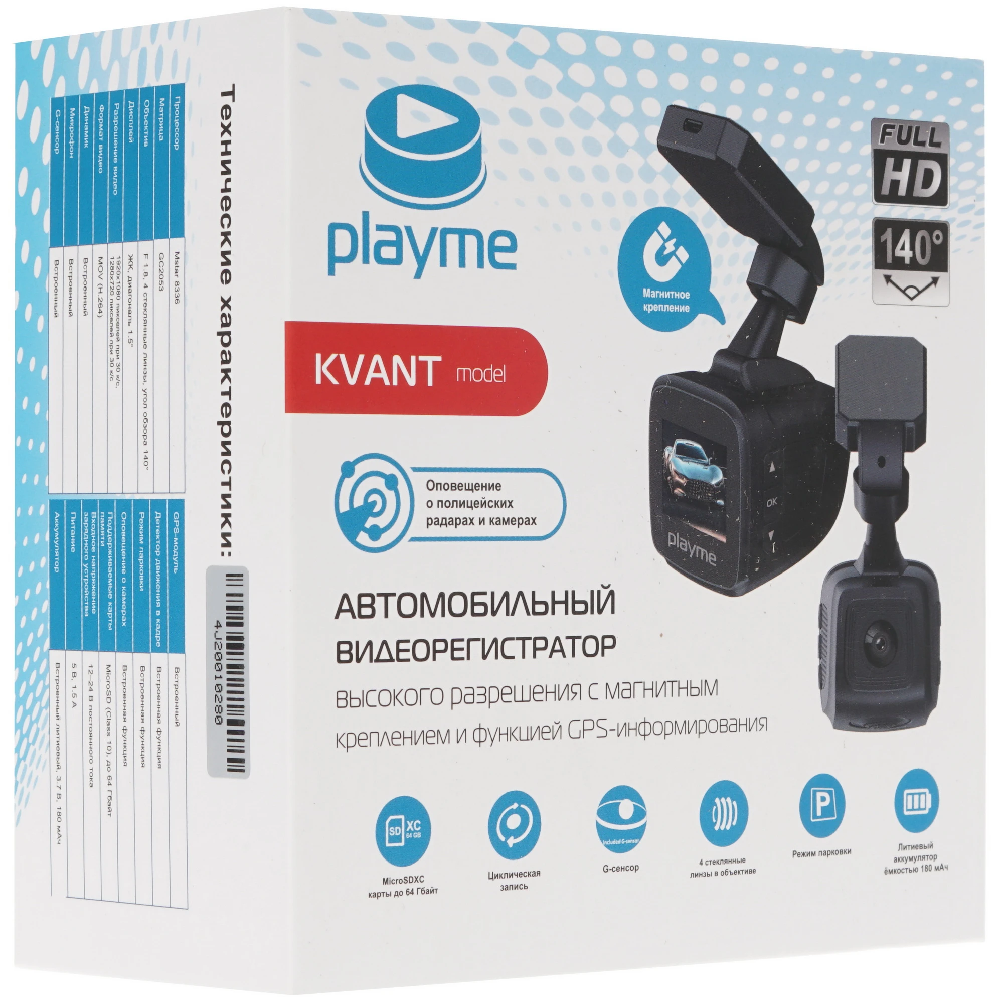 Оснащенный четырьмя стеклянными линзами видеорегистратор, радар-детектор PlayMe KVANT способен гарантировать высокий уровень качества съемки в разных условиях. Максимальное разрешение видеозаписи – 1920x1080. Угол обзора объектива равен 140°. Регистратор способен охватить обстановку не только на нескольких полосах движения, но и за пределами проезжей части. Для просмотра отснятого материала можно использовать 1.5-дюймовый экран. Запись осуществляется циклически. Сохранить наиболее важные записи (например – сделанные при ДТП) поможет датчик удара.