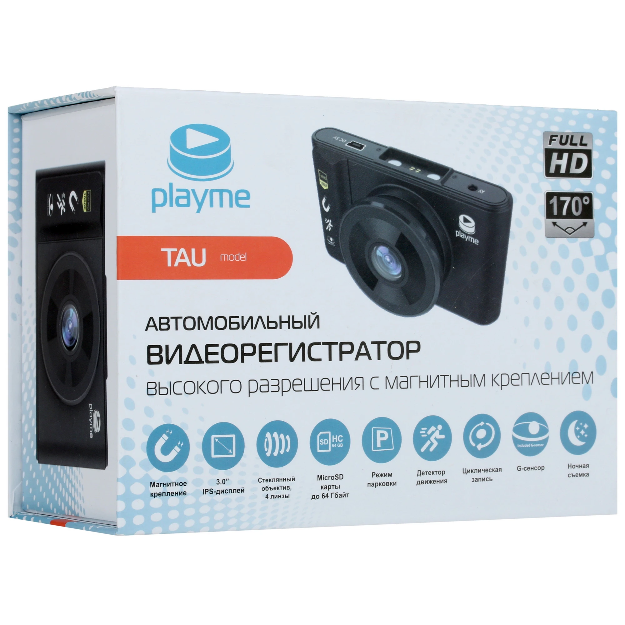 Видеорегистратор Playme TAU имеет магнитное крепление, особенностью которого является исключительно высокая скорость монтажа и демонтажа устройства. Такой тип крепления незаменим в городских условиях. Даже если вы будете постоянно оставлять автомобиль без присмотра, вы сможете обезопасить свое имущество от противоправных действий.