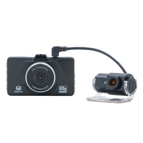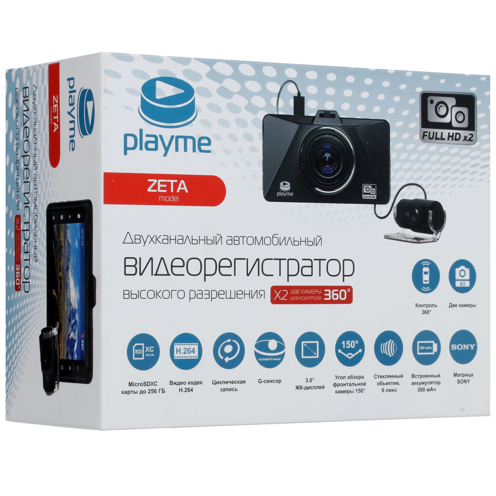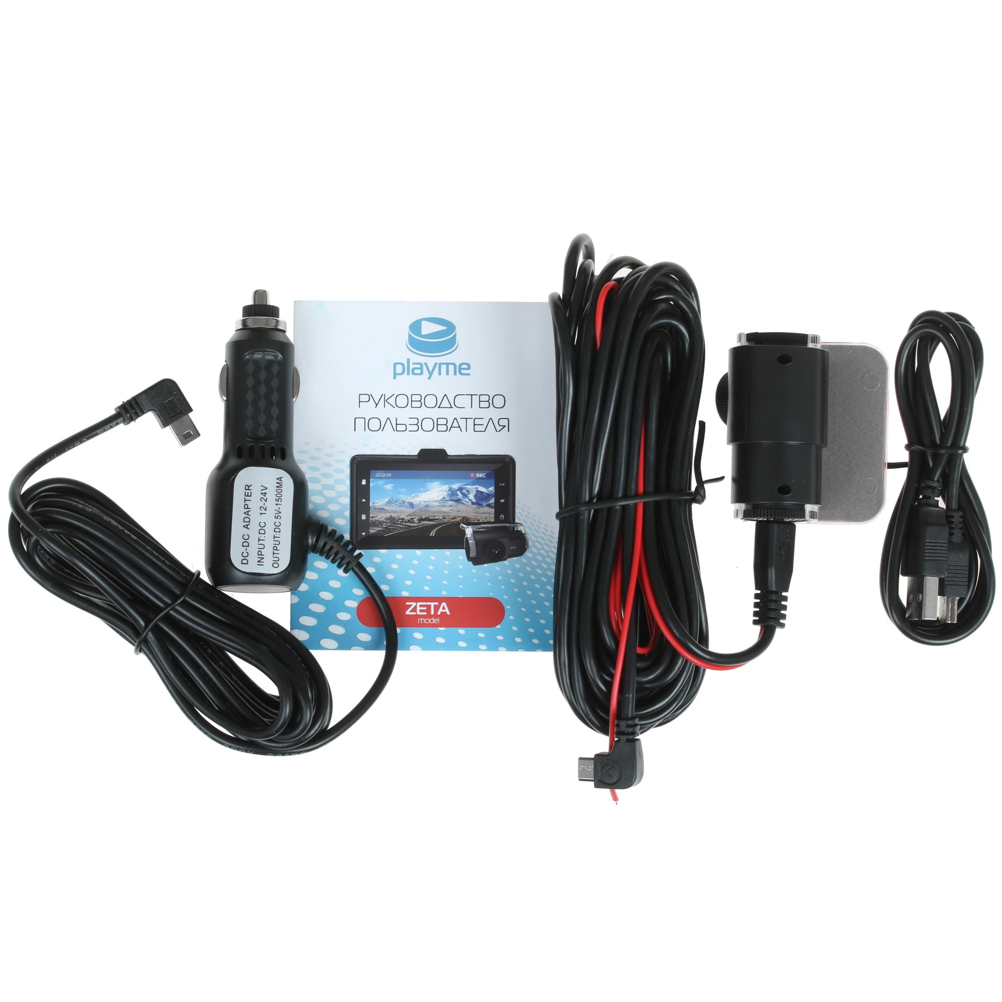 Видеорегистратор PlayMe ZETA оснащается не только фронтальной, но и дополнительной камерой. Электрическую энергию устройство получает от аккумулятора и бортовой сети. В коробку производитель прикладывает адаптер для подключения к прикуривателю в салоне. Он превосходно справляется с трансформацией тока для обеспечения техники питанием.