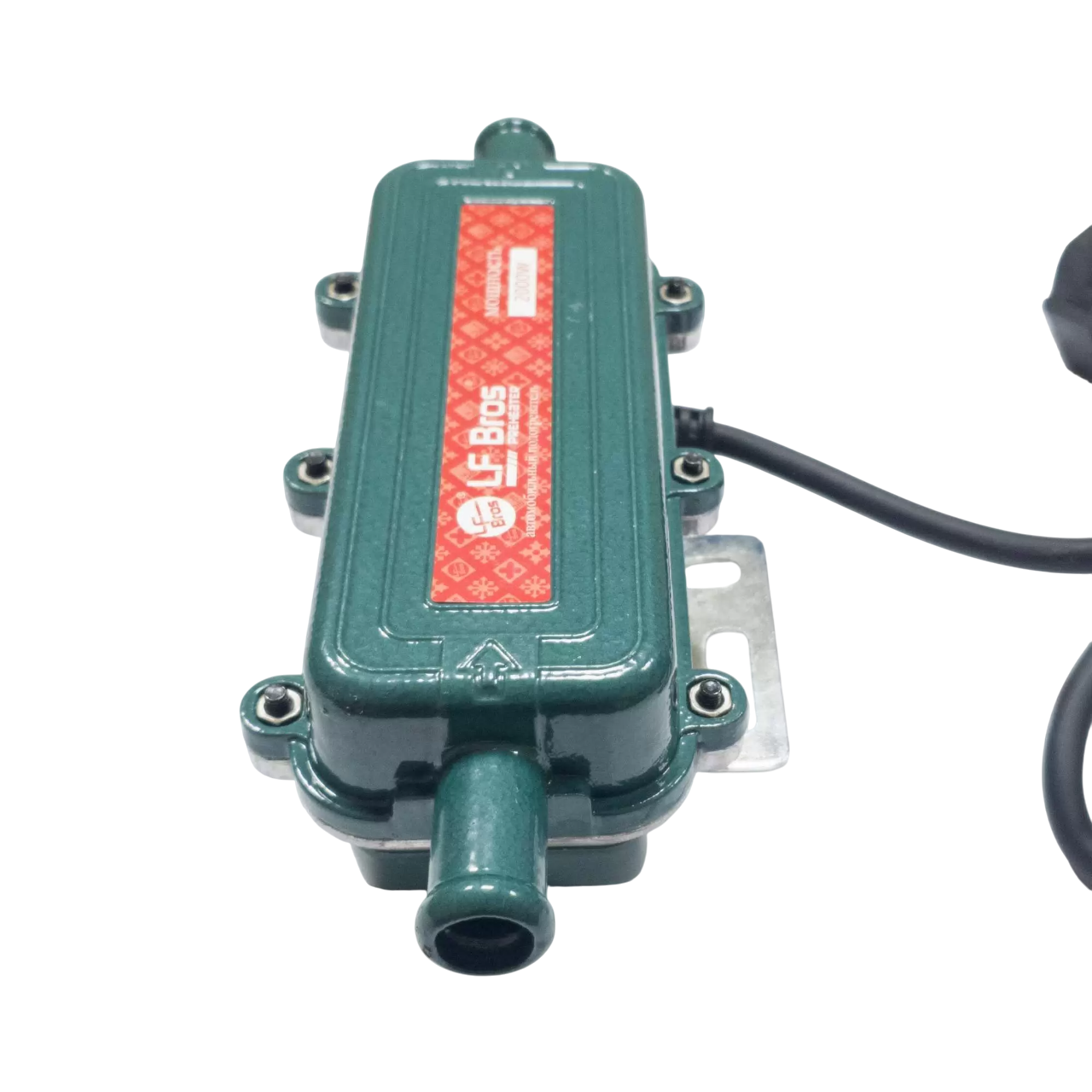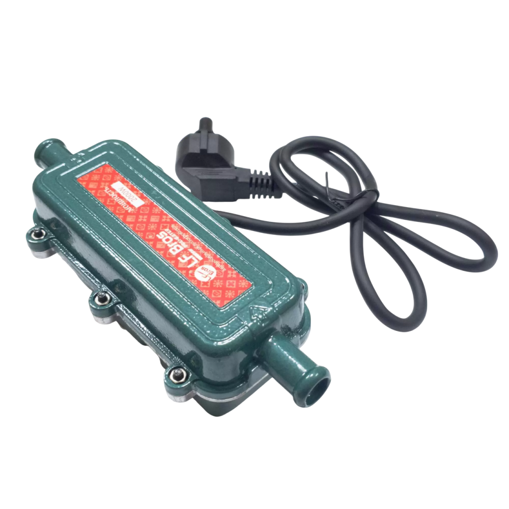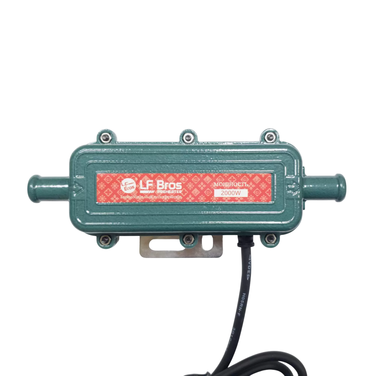 Подогреватель двигателя Лунфэй электрический предназначен для предпускового запуска и подогрева двигателя внутреннего сгорания. Подходит для легковых и грузовых автомобилей с объёмом двигателя от 1,8 л. до 2,5л. Охлаждающая жидкость нагревается и прокачивается встроенным в подогреватель насосом. Корпус алюминиевый и имеет небольшую массу. Внутри корпуса имеется датчик температуры, который при достижении 70 градусов отключает ТЭН и вновь включает его при 60 градусах. При недостатке жидкости происходит его отключение в течение 30 секунд.