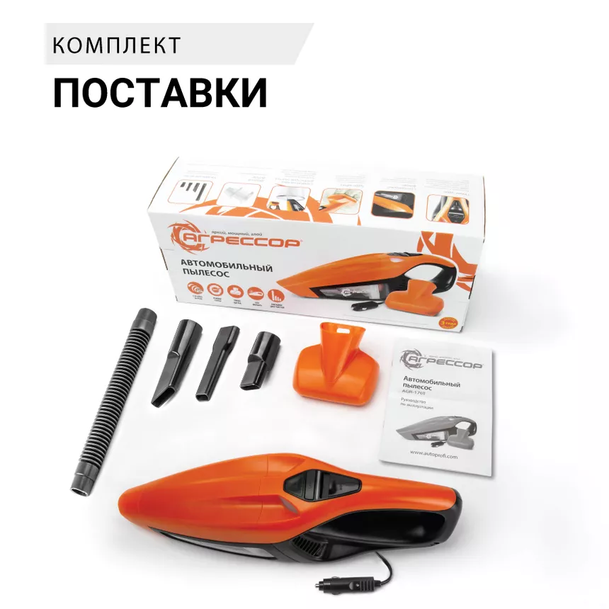 Инновационный автомобильный пылесос AGR-170T из серии «Агрессор» сочетает привлекательный дизайн с прогрессивной конструкцией и высокой функциональностью.