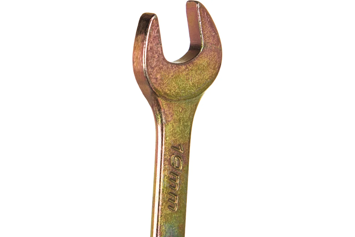 Комбинированный ключ Сибртех 14983, 19 мм, покрытый желтым цинком, предназначен для слесарно-монтажных работ с резьбовыми соединениями. Наличие рожкового и кольцевого зева делает ключ универсальным в применении. Накидная головка с 12-гранным профилем надежно удерживает крепеж, уменьшая риск его деформации. Ключ будет полезен при проведении строительных и ремонтных работ, пригодится для сборки и разборки оборудования, а также необходим в быту.